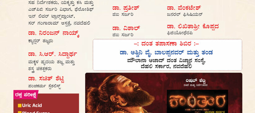 ಆರೋಗ್ಯೋತ್ಸವ ದಿನಾಂಕ : ೦೯.೧೧.೨೦೨೫, ಭಾನುವಾರ ಬೆಳಿಗ್ಗೆ ೮.೦೦ ರಿಂದ ಮಧ್ಯಾಹ್ನ ೧.೦೦ ರಿಷಬ್ ಶೆಟ್ಟಿ ರಚನೆ ಮತ್ತು ನಿರ್ದೇಶನದ ಕಾಂತಾರಾ (ಅಧ್ಯಾಯ-೧) ಚಲನಚಿತ್ರ ಪ್ರದರ್ಶನ ಮಧ್ಯಾಹ್ನ : ೧.೩೦ ಗಂಟೆಗೆ